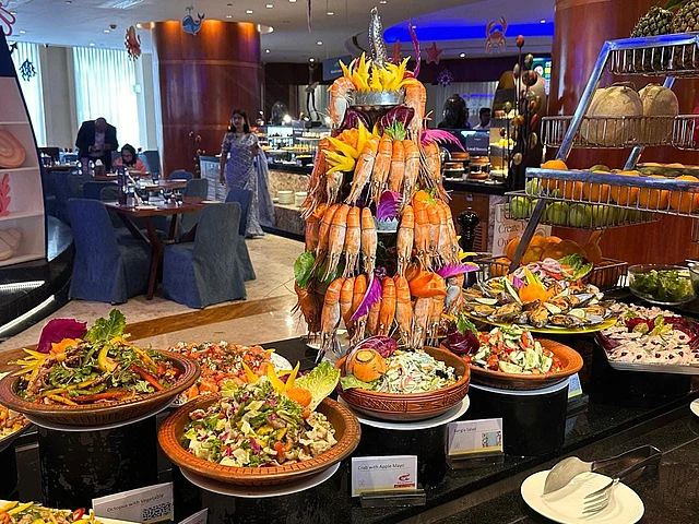 শুধু সি-ফুড নয়, মাংসপ্রেমীদের জন্যও ছিল আলাদা আয়োজন—মাটন নেহারি ও নানা ধরনের কাবাব। আর ডেজার্ট কাউন্টারে মধ্যপ্রাচ্যের ঐতিহ্যবাহী মিষ্টান্ন যেমন বাকলাভা, কুনাফা, লুকমা, মাহলাবিয়া কিংবা কাতায়েফ—সব মিলিয়ে খাবারের শেষ পর্বটিও ছিল সমান আকর্ষণীয়।