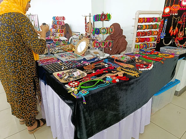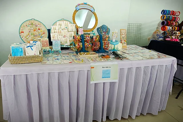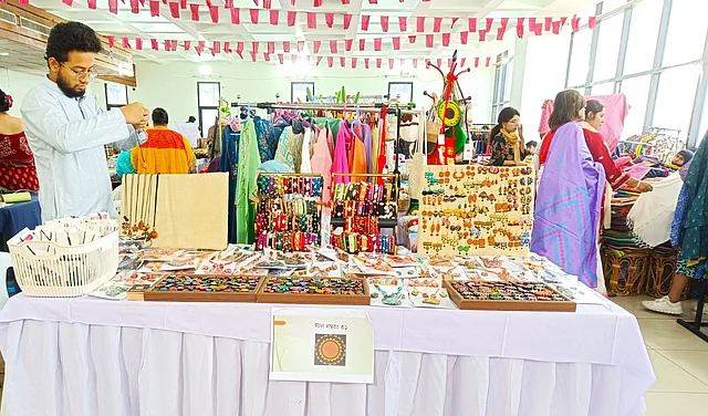 হাতে তৈরি নানা ধরনের গয়না—মুক্তা, অক্সিডাইজড ব্রাস, কড়ি, সুতা, রেজিন, পোড়ামাটি ও বিডসের কাজ করা অলংকার—সবই মিলছে এখানে।