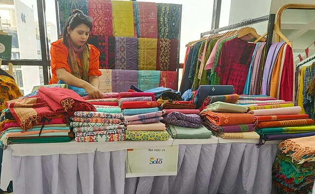 বৈশাখ মানেই রঙিন পোশাক। এখানে শাড়ি, থ্রি-পিস, টু-পিস, ওয়ান-পিস, কুর্তি-পায়জামা, পাঞ্জাবি, টি-শার্ট থেকে শুরু করে আনস্টিচ কাপড়ও পাওয়া যাচ্ছে। ব্লক, বাটিক, কাঁথাস্টিচ ও ন্যাচারাল ডাইয়ের পোশাকের বিশেষ উপস্থিতি আলাদা করে চোখে পড়ে।