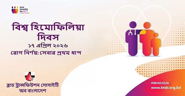 ‘বিশ্ব হিমোফিলিয়া দিবস ২০২৬’ উপলক্ষে ব্লাড ট্রান্সফিউশন সোসাইটি অব বাংলাদেশ (বিটিএসবি) দেশের সব হিমোফিলিয়া রোগীর জন্য উন্নত, নিরাপদ ও সমতাভিত্তিক চিকিৎসা নিশ্চিত করার আহ্বান পুনর্ব্যক্ত করেছে।