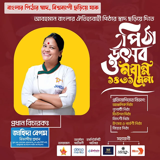 ‘বাংলার পিঠার স্বাদ বিশ্বব্যাপী ছড়িয়ে যাক’—এই স্লোগানকে সামনে রেখে আয়োজিত এবারের প্রতিযোগিতায় থাকছে বৈচিত্র্যপূর্ণ আয়োজন, প্রতিযোগিতা ও সম্মাননার বিশেষ পর্ব।