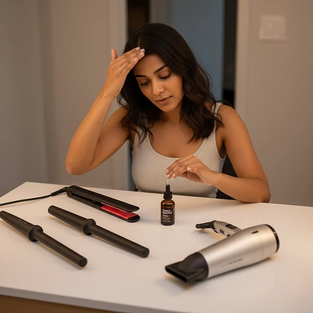 কম তাপ ব্যবহার, মাঝে মাঝে এয়ার-ড্রাই, কেমিক্যাল ট্রিটমেন্টের মাঝে বিরতি, আর খুব টাইট হেয়ারস্টাইল এড়িয়ে চলা—এই ছোট পরিবর্তনগুলোই ফলিকলকে স্বস্তি দেয়। হিট প্রোটেক্ট্যান্ট স্প্রে ও বন্ড-রিপেয়ার মাস্ক চুলের গোড়ায় ক্ষতি পৌঁছাতে বাধা দেয়।