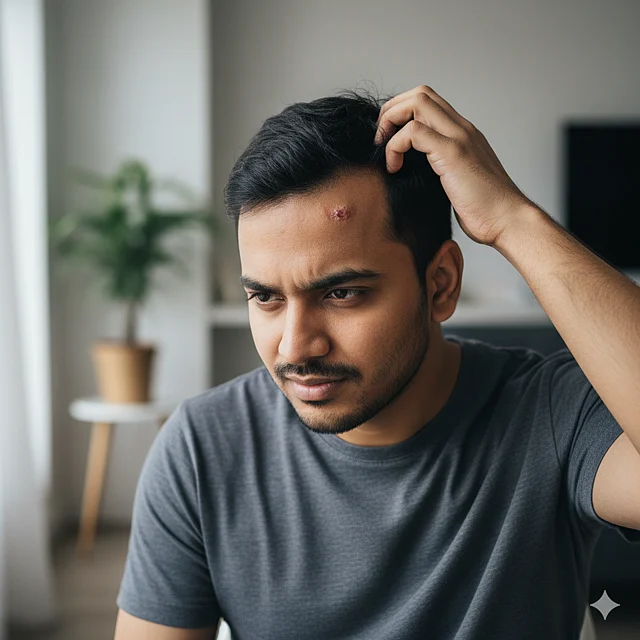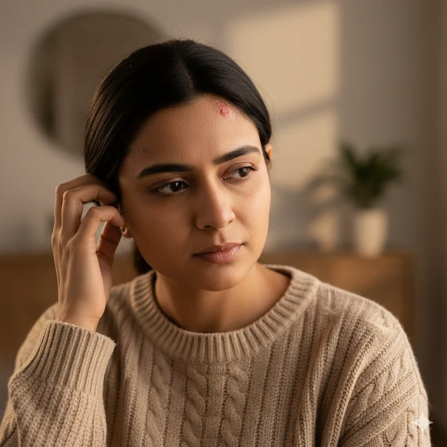 বিশেষ করে স্ক্যাল্প সোরিয়াসিসের ক্ষেত্রে ত্বকে ঘন স্কেল, লালচে ভাব ও খোসা দেখা যায়, যা চুলকাতে গিয়ে স্ক্যাবে পরিণত হতে পারে।