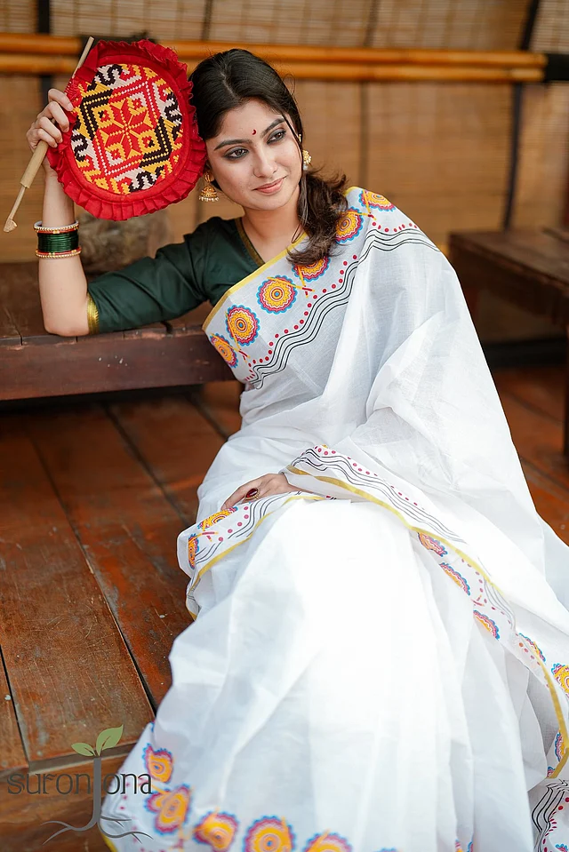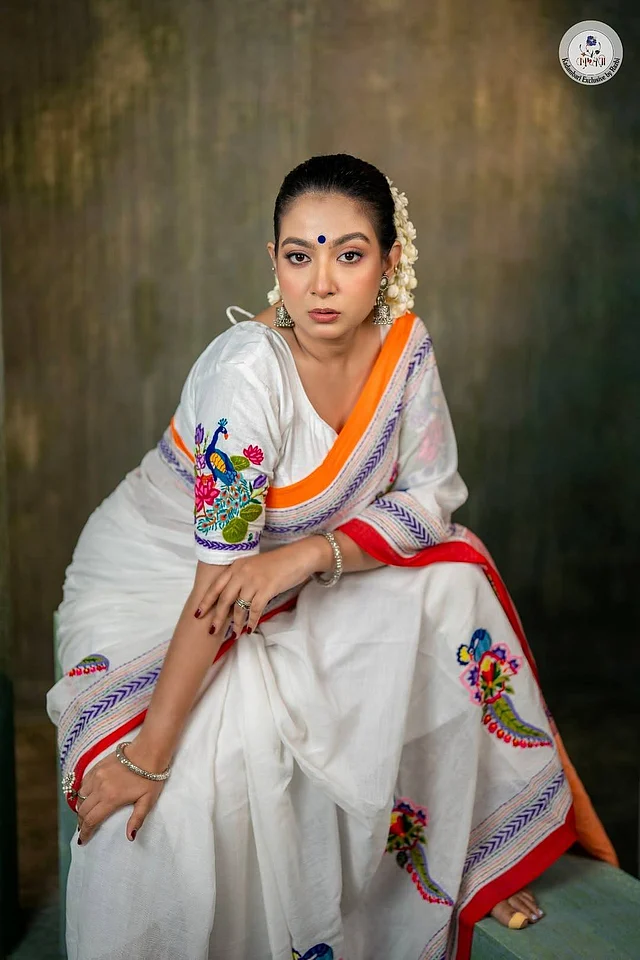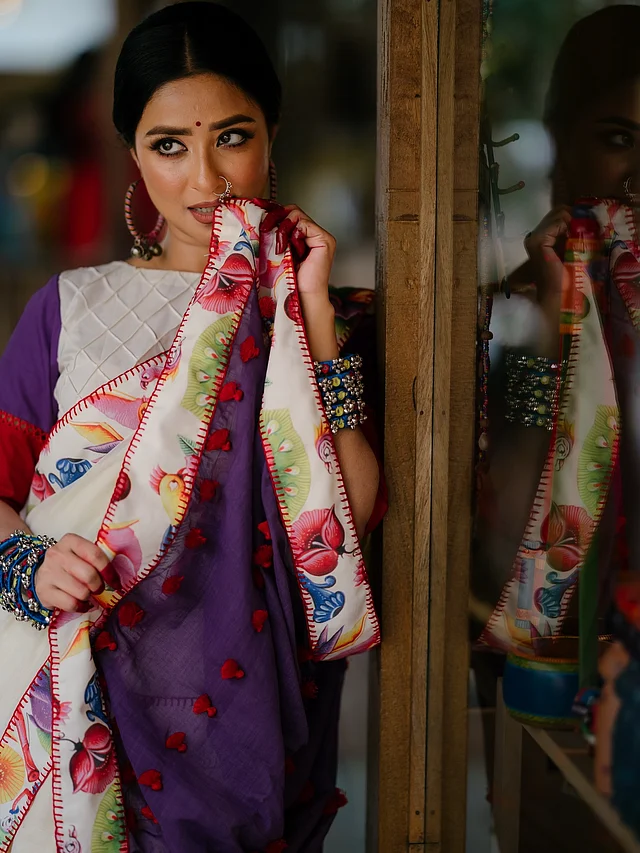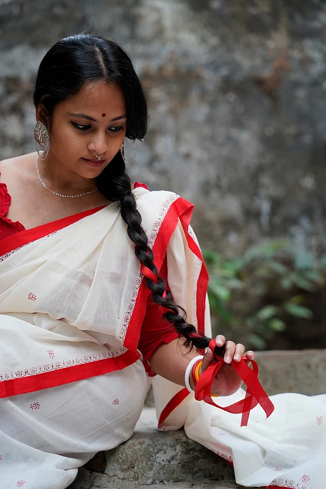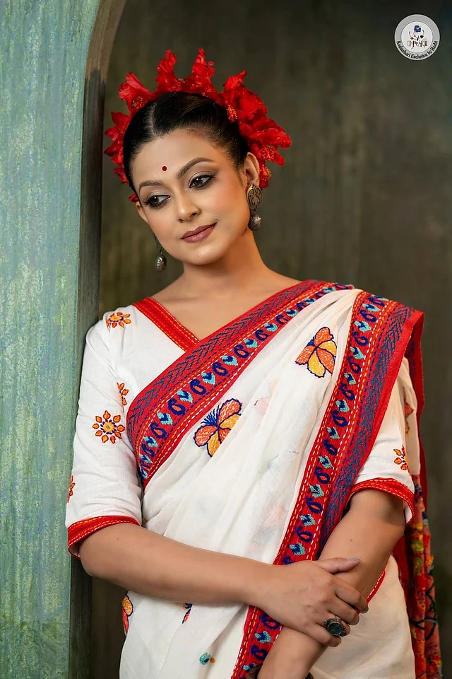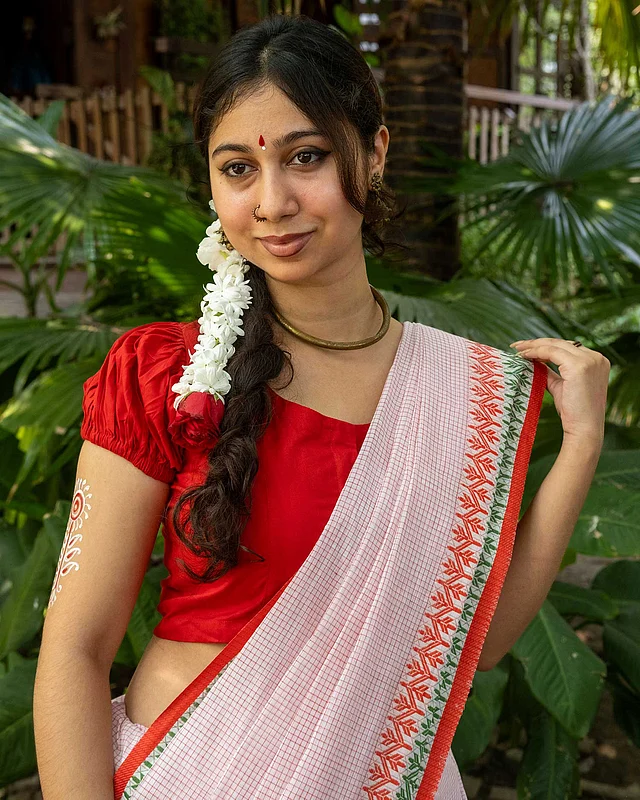 চুলে গুঁজে নিতে পারেন কাঁচা ফুল। কপালে একটি মানানসই টিপ পুরো লুককে করে তুলবে আরও আকর্ষণীয়।