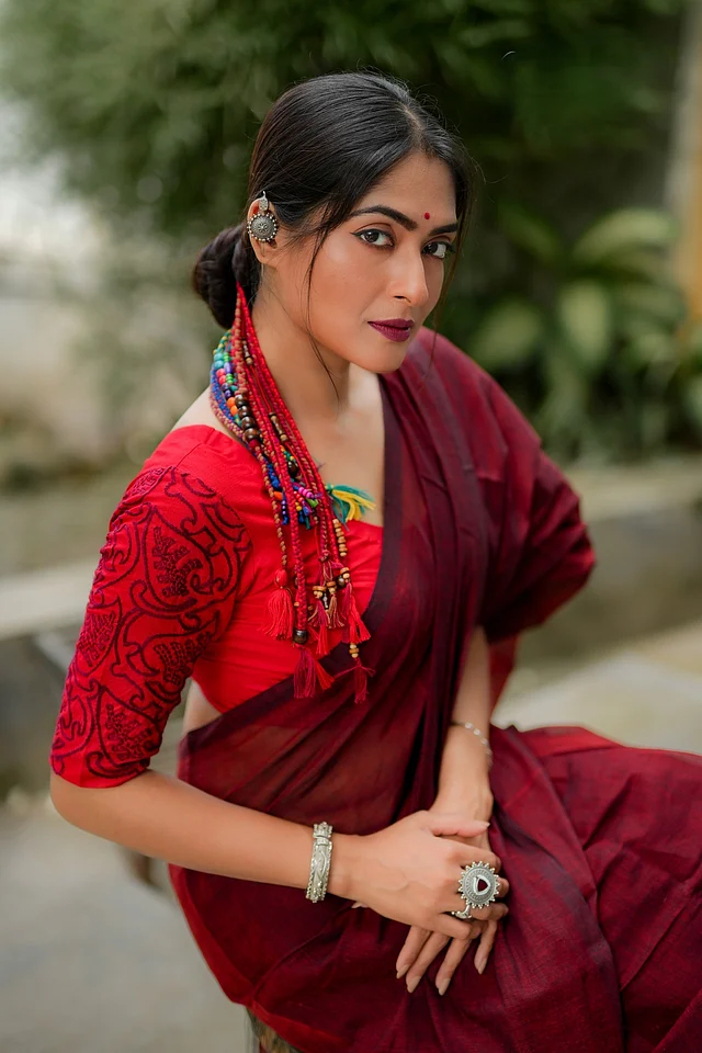 চুলের স্টাইল নিজের স্বস্তি অনুযায়ী রাখতে পারেন—খোলা চুল বা খোঁপা, দুটোই মানানসই।