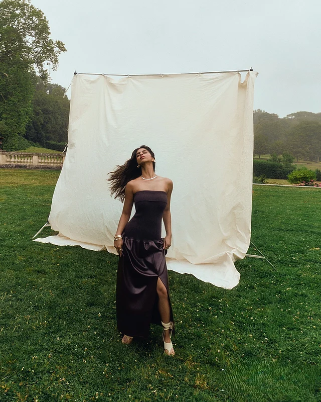 মিনিমাল ও হালকা মেকআপ এবং সতেজ ত্বক। ফরাসি গ্রামাঞ্চলের শান্ত পটভূমিতে ফ্লোই ও এলিগ্যান্ট পোশাকগুলো যেন অনায়াসে মিশে গেছে পরিবেশের সঙ্গে।