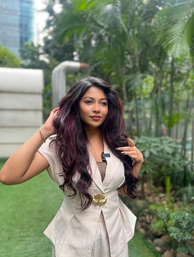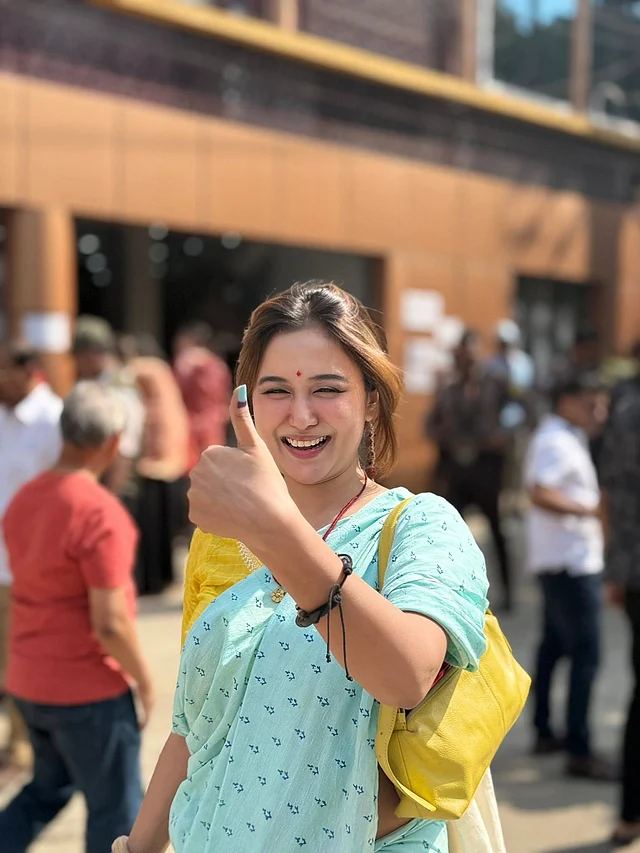 তবে ভোটের ছবিতে বেশি নজর কাড়ছে আকাশনীল নেইলকালার। লাল টিপ আর ন্যুড ব্রিকরেড লিপকালার বেছে নিয়েছেন চমক। হাতে কালো ব্রেসলেট।