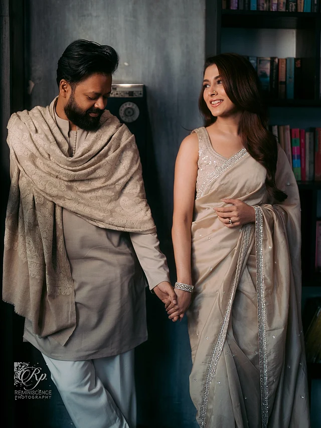 ছবিতে দু’জনের স্টাইলিংয়েই প্রকাশ পেয়েছে একই টোনের পরিমিত এলিগ্যান্স। ফ্যাশন ব্র্যান্ড গুজেল ও আনজারার আউটফিট পরেছেন তাঁরা।