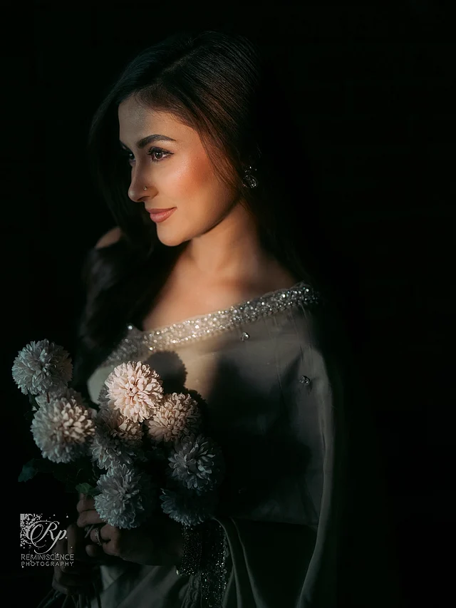 মেহজাবীন বেছে নিয়েছেন বেজ টোনের শাড়ি। মিনিমাল এমব্রয়ডারি আর সূক্ষ্ম সিকুইন ডিটেইলে সাজানো শাড়ির বর্ডার। স্লিভলেস ব্লাউজেও রয়েছে সিকুইনের অলংকরণ, যা পুরো লুকটিকে দিয়েছে আধুনিক অথচ ক্ল্যাসিক আবেদন।