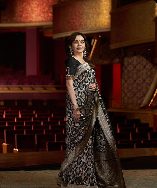 হলুদ ট্রেন্ডে আছে বলে কিন্তু কালোর আবেদনে ভাটা পড়েনি একরত্তি। সম্প্রতি ধনকুবের আম্বানি-বধূ নীতা আম্বানি ‘মিস ওয়ার্ল্ড, ২০২৪’-এর মঞ্চ আলোকিত করেন কালো রঙের একটি কাতান শাড়িতে। শাড়িটির জমিনজুড়ে ছিল সোনালি বুটির ‘জংলা’ নকশা। চওড়া পাড়েও ছিল সোনালি জরির কাজ। অপূর্ব সুন্দর শাড়িটির নকশা করেছেন ভারতীয় ডিজাইনার মনীশ মালহোত্রা ও ফ্যাশন ব্র্যান্ড স্বদেশ।