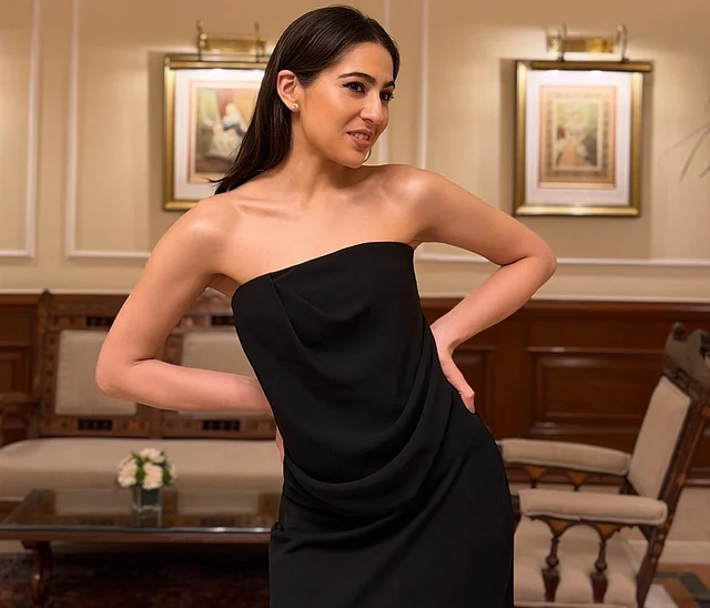 সারা আলি খান-এর ম্যাট ব্ল্যাক গাউন ছিল সংযত অথচ প্রভাবশালী। স্ট্র্যাপলেস কাট, লেয়ার্ড বডিস এবং ফ্লোই ট্রেন—পুরো লুকটি রাজকীয়।