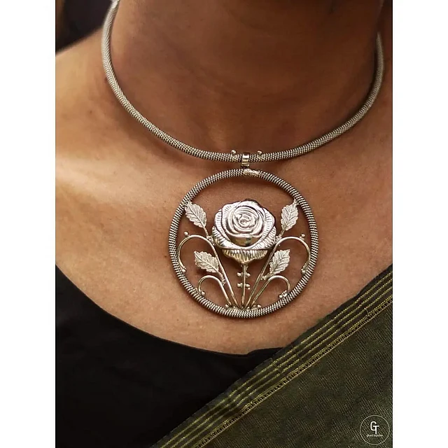 বেশ কিছুদিন ধরে বিভিন্ন ব্যতিক্রমী মোটিফ নিয়ে নিরীক্ষার পরে গত বছর গোলাপের আকৃতি দিয়ে এই কাজটি করা হয়েছে। ঐতিহ্যবাহী মোটিফের বাইরে গিয়ে করা এই ইউনিক গয়নাটি পরা যাবে সবকিছুর সঙ্গে