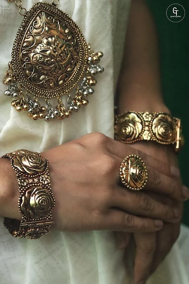 ঐতিহ্যবাহী থিমে নিখুঁত নকশার কাজের একটি উদাহরণ এই সেট দুটি। নিজস্ব নকশার মোটিফে নিজেরাই মোল্ড তৈরি করে আর হাতের কাজের মাধ্যমে এগুলোকে রূপ দেওয়া হয়েছে।