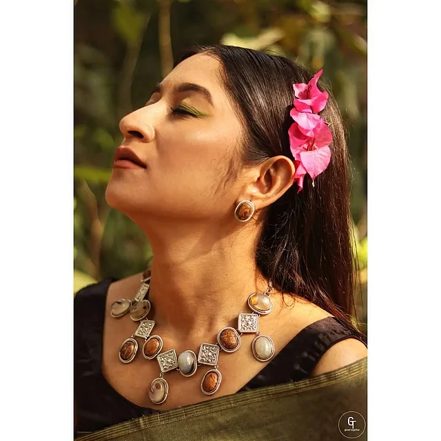 আর তেমনই কিছু বিশিষ্ট পাথর দিয়ে এই গয়নার সেটটি তৈরি। দৃষ্টিনন্দন এই সেটটি এখনকার ট্রেন্ডের শীর্ষে থাকা প্যাস্টেল শেডের পোশাকের সঙ্গে খুব মানিয়ে যাবে।