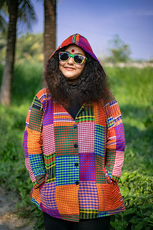 বর্তমান প্রজন্মের ছেলেমেয়েদের কাছে হুডি অত্যন্ত পছন্দের শীতপোশাক। জাদুর বাক্স যেহেতু বরাবরই গামছা দিয়ে ভিন্ন ভিন্ন ধরনের পোশাক নিয়ে আসে, তাই এবার শীতের কথা মাথায় রেখে তৈরি করে ফেলেছে গামছা প্যাচওয়ার্কের হুডি। এটা এমন প্যাটার্নে করা হয়েছে, যাতে ছেলেমেয়ে উভয়েই পরতে পারে। এটি তৈরিতে ব্যবহার করা হয়েছে সিরাজগঞ্জের হান্ডলুম গামছা এবং একটু ভারী করার জন্য ভেতরে থাই কটন ব্যবহার করা হয়েছে। সাধারণত আমরা জানি, গামছা থেকে অনেক সময় রং ওঠে। এ জন্য এই হুডি তৈরিতে যে গামছা ব্যবহার করা হয়েছে, সেগুলোর রং পাকা। ফলে রং ওঠার কোনো ভয় নেই। নিজেদের ঐতিহ্যের তাঁতের কাপড়কে এভাবেই আন্তর্জাতিক মানের পোশাকে রূপান্তরের এই প্রয়াস—কোনো সন্দেহ নেই অসাধারাণ।