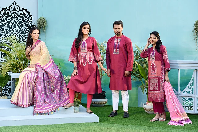 ছোট মেয়েরা মা বা বোনের সঙ্গে মিলিয়ে সালোয়ার কামিজ বা কুর্তি পরতে পারবে, আবার বাবা-ছেলের জন্য রয়েছে মিলিয়ে পাঞ্জাবি বা শার্ট। যুগলদের জন্যও আছে বিশেষ পোশাকের লাইন।