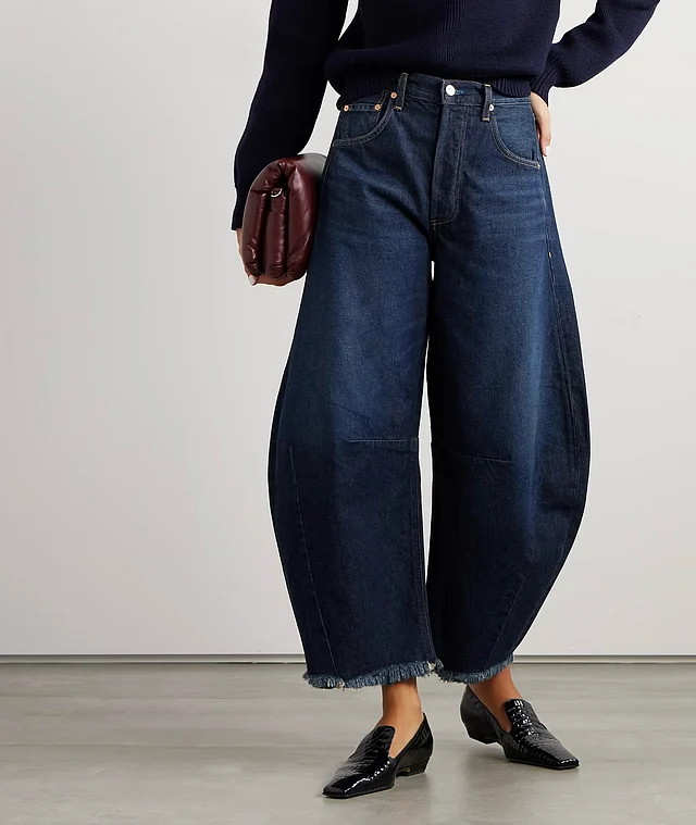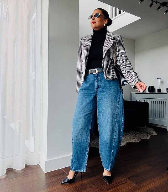 ব্যারেল প্যান্টসের শেপ এতটাই স্টেটমেন্ট প্রকাশ করে যে বাকি লুক যত সরল হয়, তত ভালো।