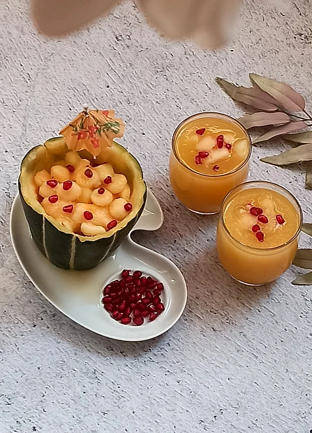 বাঙ্গি এমনিতেই খাওয়া যায়। একটু মধু, চিনি বা আখের গুড় দিয়ে মেখে নিলে তো কথাই নেই। মেশানো যায় যেকোনো ফ্রুট সালাদ বা স্মুদিতে। বাঙ্গির শরবতে আনা যায় মনমতো দারুণ বৈচিত্র্য। এই যেমন আজ পারভীন আলী বাঙ্গির সঙ্গে একটু লাল চিনি আর বিটলবণ দিয়ে ব্লেন্ড করে কিছু আনারদানা যোগ করেছেন। এতে রূপ যেমন খোলতাই হয়েছে, টেক্সচারের জন্যও দারুণ লাগবে খেতে এই শরবত। আবার ‘মেলন বলার’ দিয়ে গোল গোল করে কেটে নিয়ে বাঙ্গির খোলের মধ্যেই পরিবেশন করা যায় ছবির মতো। বাঙ্গি স্বাদ, পুষ্টি আর তৃপ্তি—সবই দিতে চায় উজাড় করে, শুধু একটু নজর দিলেই হলো তার দিকে।