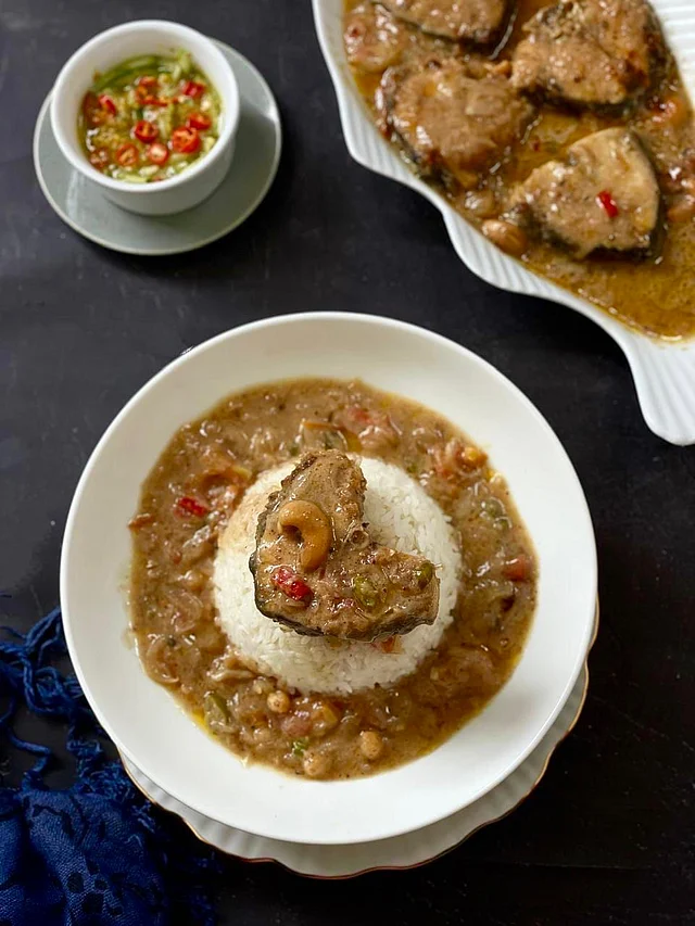 প্রথমে মাছের টুকরাগুলো ভালো করে ধুয়ে পানি ঝরিয়ে নিতে হবে। মাছে লবণ ও গোলমরিচের গুঁড়া মাখিয়ে ১০–১৫ মিনিট ম্যারিনেট করে রাখতে হবে। এবার একটি প্যানে তেল দিয়ে গরম হলে মাছের টুকরাগুলো হালকা লালচে করে ভেজে নিতে হবে। তারপর ওই প্যানেই ঘি দিয়ে কাজুবাদাম ও কিশমিশ হালকা ভেজে উঠিয়ে রাখতে হবে। তেল ও ঘি মেশানো প্যানে পেঁয়াজকুচি দিয়ে নাড়াচাড়া করে হালকা নরম ও বাদামি হলে তাতে টমেটোকুচি, মরিচকুচি, ধনেগুঁড়া, জিরাগুঁড়া, গোলমরিচের গুঁড়া, আদা–রসুনবাটা ও লবণ দিয়ে নাড়াচাড়া করে ২ মিনিট ঢাকনা দিয়ে ঢেকে রাখতে হবে।