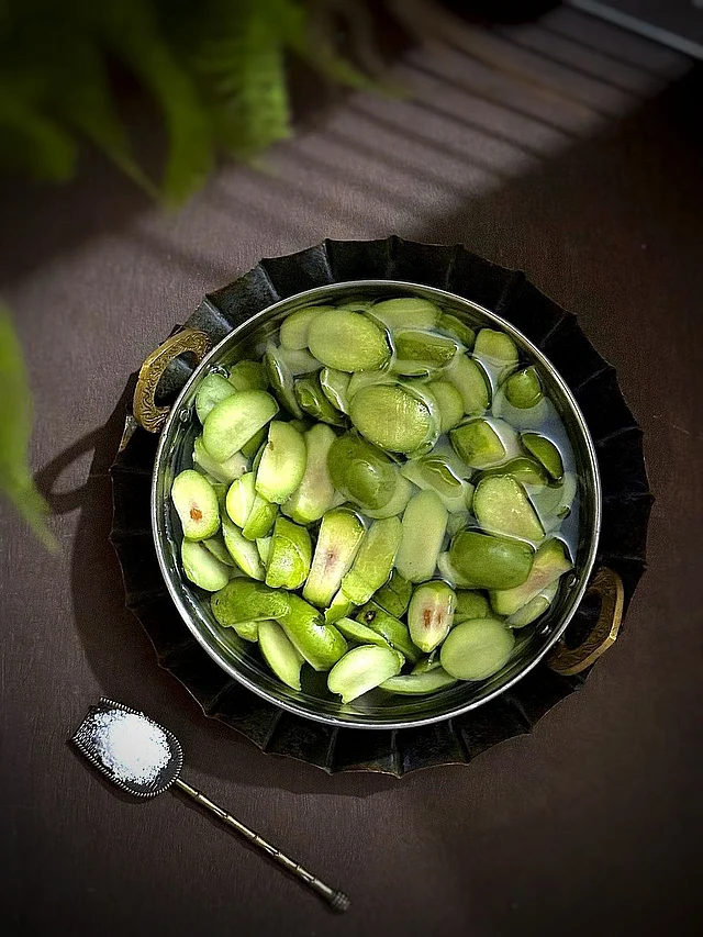 জলপাইগুলো ভালোভাবে ধুয়ে টুকরা করে নিন। এরপর লবণ পানিতে ডুবিয়ে রাখুন পনের মিনিটের মতো। এতে করে জলপাইয়ের কষটে ভাবটা কমে যাবে।