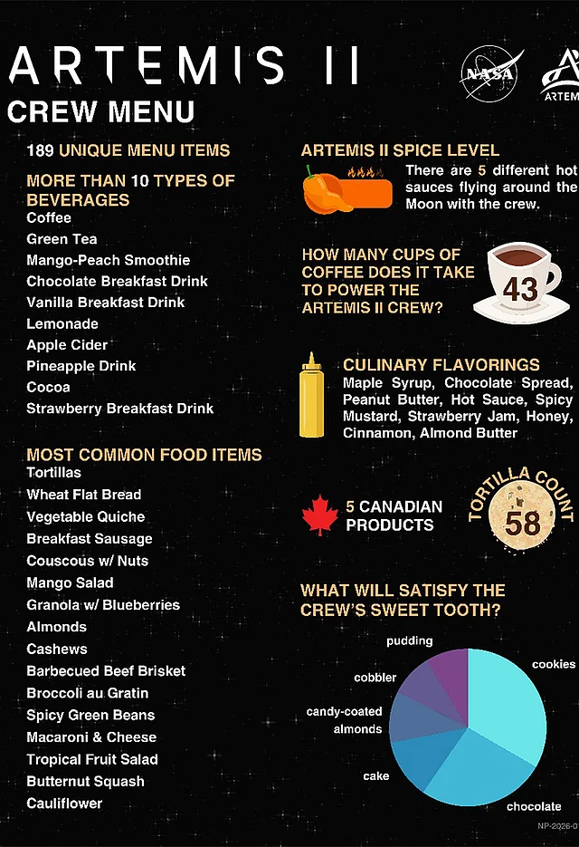 নিচে আর্টেমিস–২ মিশনের খাবার–পরিকল্পনা নিয়ে কিছু মজার তথ্য ও সহজ ব্যাখ্যা দেওয়া হলো: