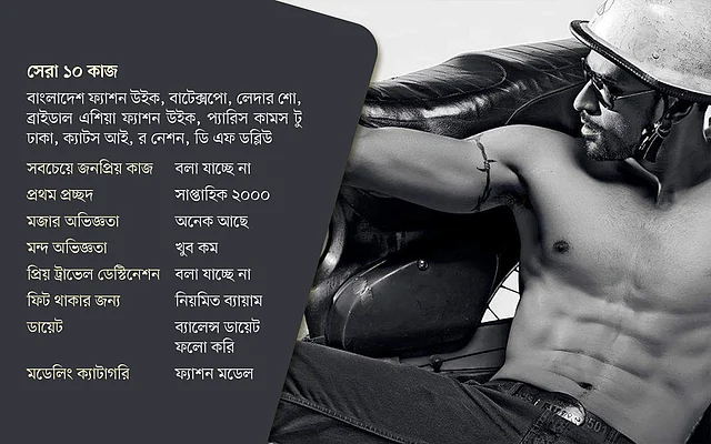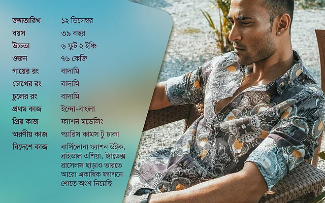 খেলতেন ক্রিকেট। সেখান থেকে সোজা ফ্যাশন মডেলিংয়ে। অবশ্য কাঁধের আঘাত তাঁকে ক্রিকেট বিমুখ করে। র্যাম্পে প্রথম হাঁটেন ২০০০ সালে। সূচনার আড়ষ্টতা ঝেড়ে ফেলে দেশের শীর্ষ সারির মডেল হয়ে উঠতে সময় লাগেনি। বরং এখনও সমান তালে দাপিয়ে বেড়াচ্ছে মডেলিংয়ের নানা ক্ষেত্রে।