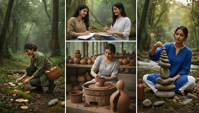 প্রকৃতির কাছাকাছি যাওয়ার ইচ্ছাও এই ট্রেন্ডকে আরও জনপ্রিয় করে তুলছে। ফরেজিং—অর্থাৎ বনে-জঙ্গলে ঘুরে নিজে নতুন কিছু খুঁজে বের করা—এখন অনেকের শখে পরিণত হয়েছে। বৃষ্টির দিনে বুনো মাশরুম খোঁজা কিংবা নদীর ধারে পাথর সাজিয়ে ব্যালান্স করা—এগুলো শুধু সময় কাটানোর উপায় নয়, বরং মনোযোগ, ধৈর্য আর সংযোগের এক অনন্য অভিজ্ঞতা।